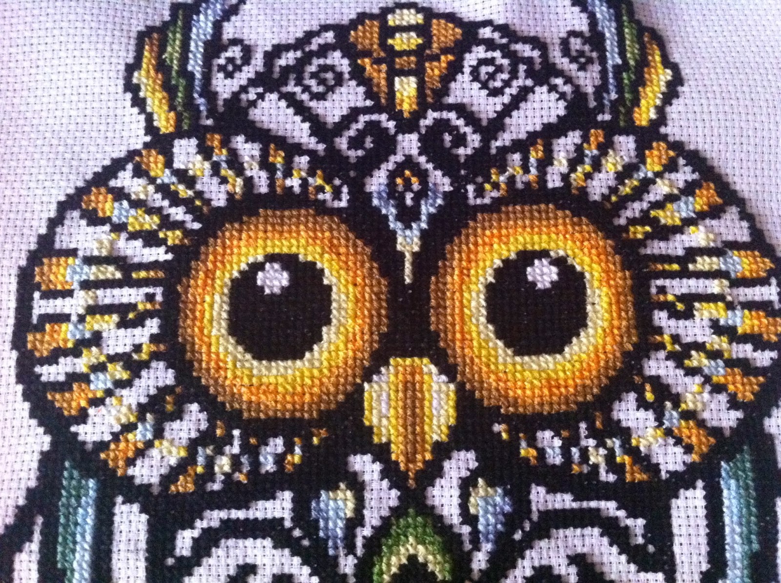 Jako że ostatnio mam bzika na punkcie sów, taki właśnie haft wybrałam, by powiesić na swojej ścianie. I nareszcie udało się go skończyć! Haftowałam go z ogromną przyjemnością. Wzór jest niezwykle prosty, jedynie oczy są trochę bardziej skomplikowane, ale praca na pewno warta jest efektu końcowego.